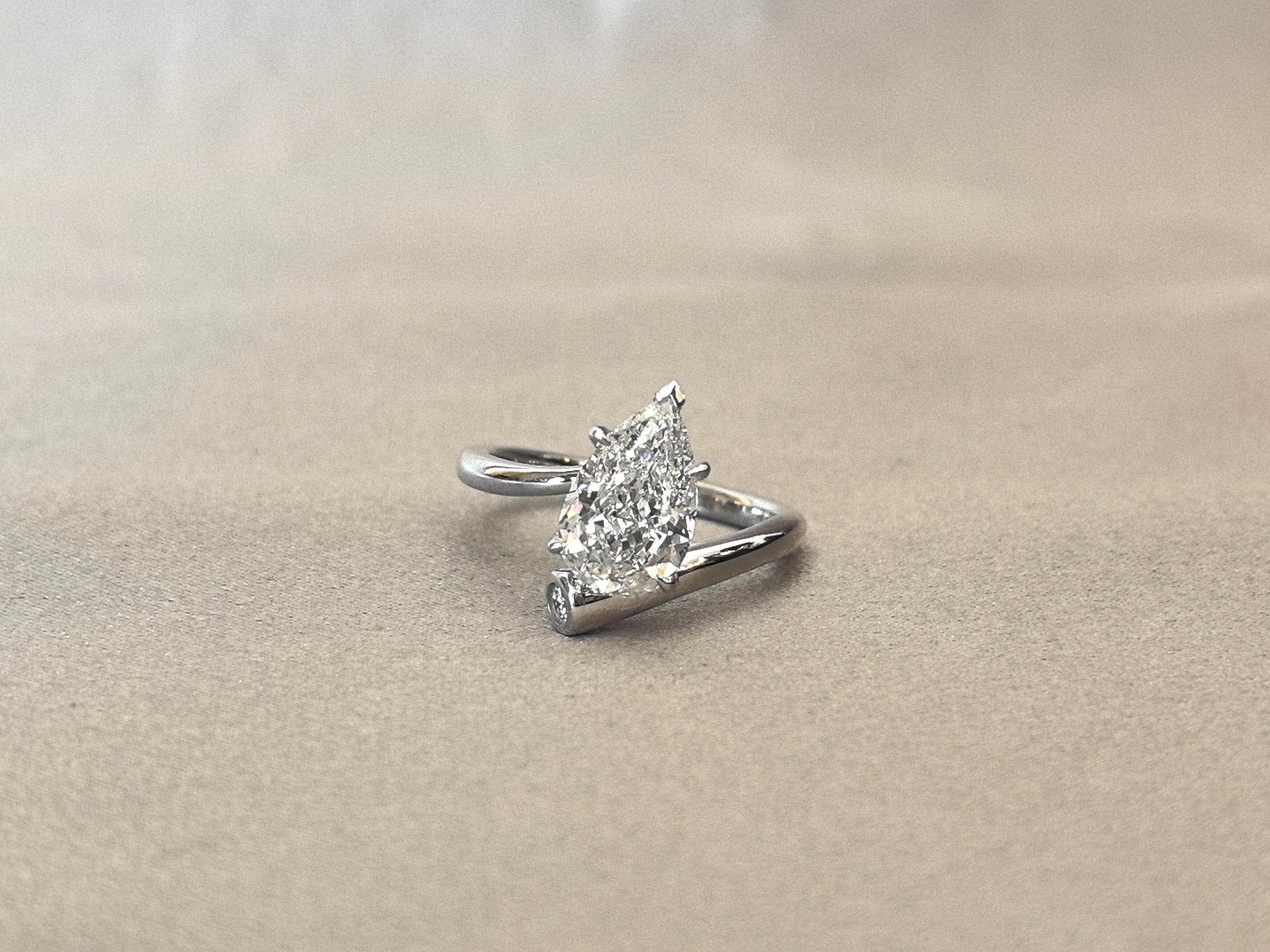 Pear Cut Lab Diamond Ring | Twisted Band | Minimalist Design | 14K Gold