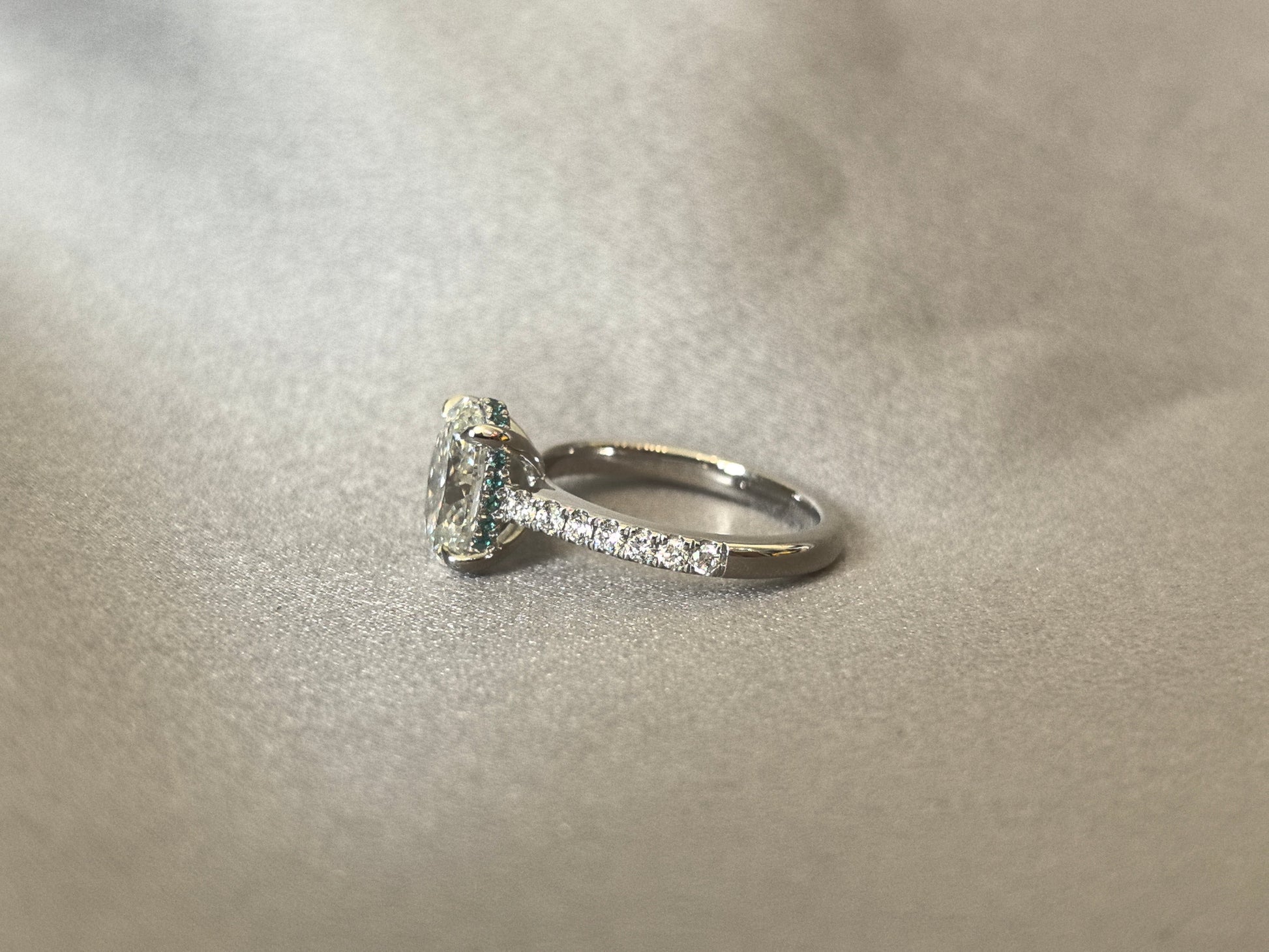 Dainty Paraiba Hidden Halo Oval Lab Diamond Ring