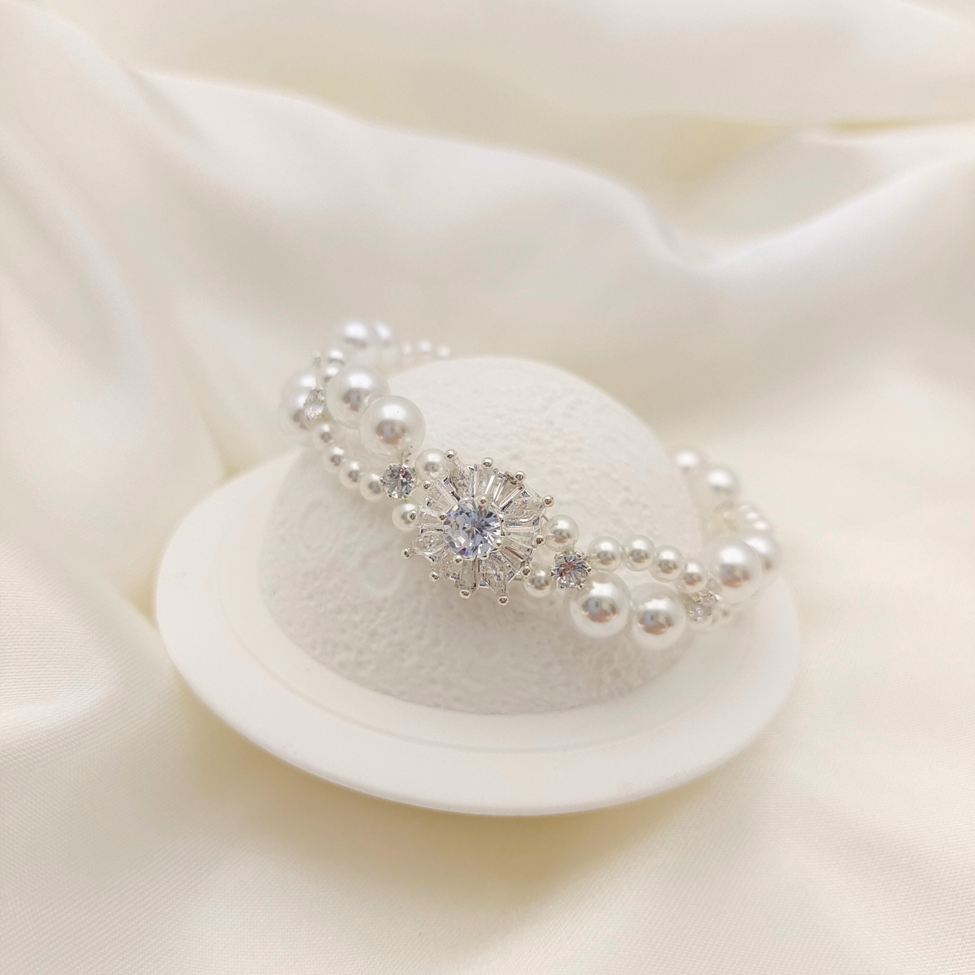 No.48 Dream Wedding Handmade Pearl & Zircon Bridal Bracelet – Elegant White