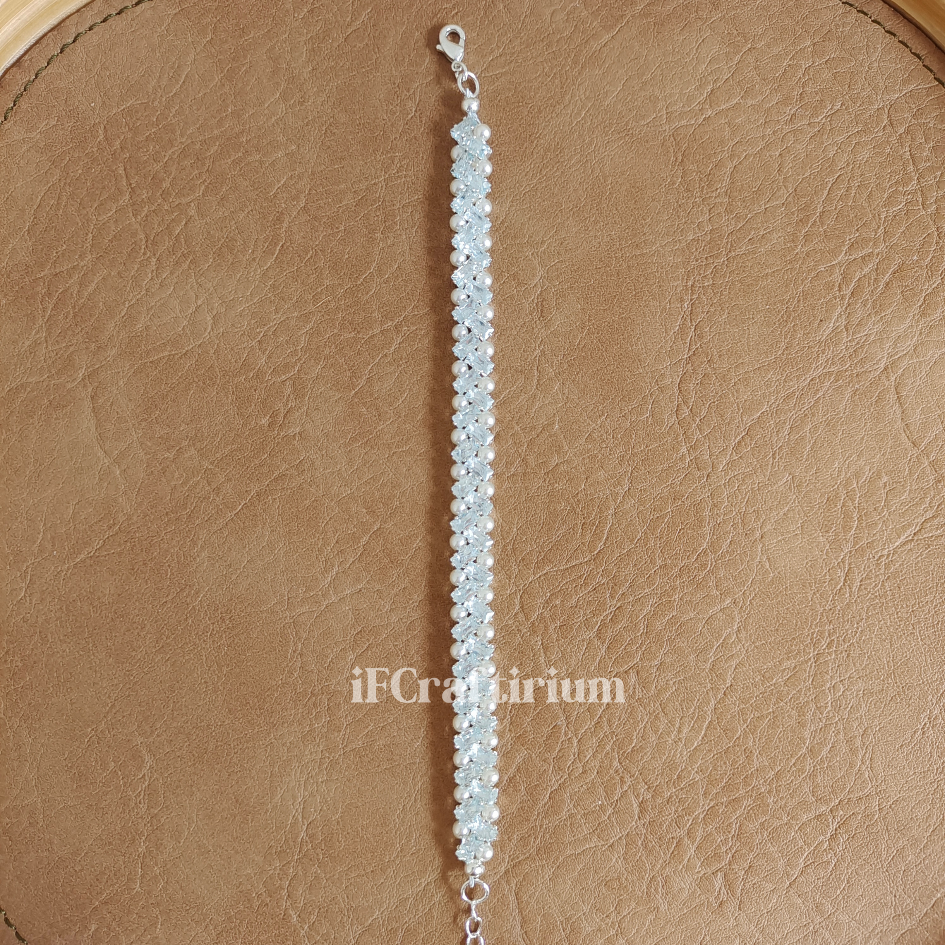 No.20 Frozen-Inspired Elsa Handmade Bracelet β Ice Blue CZ & Faux Pearls, Ready to Wear