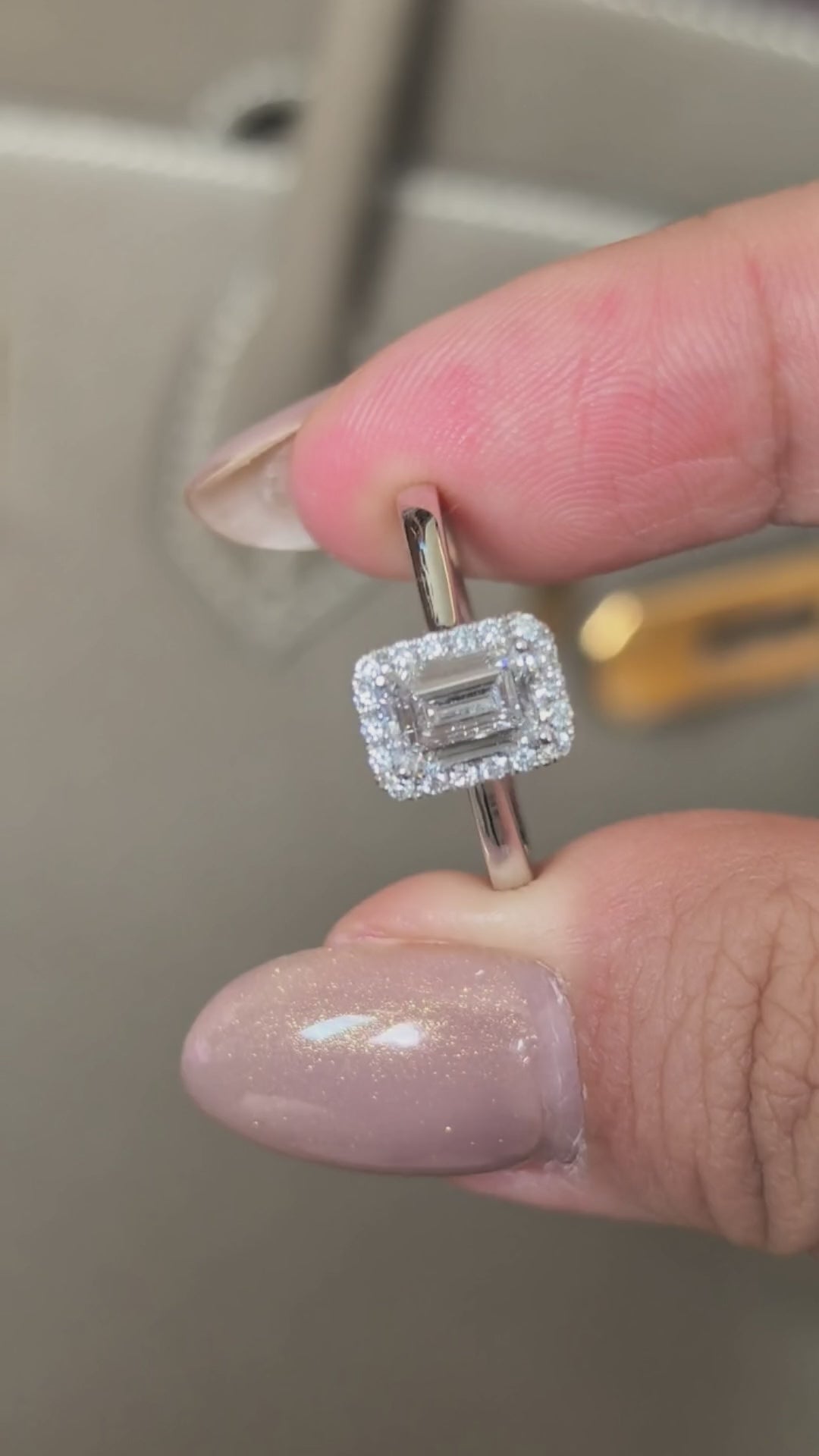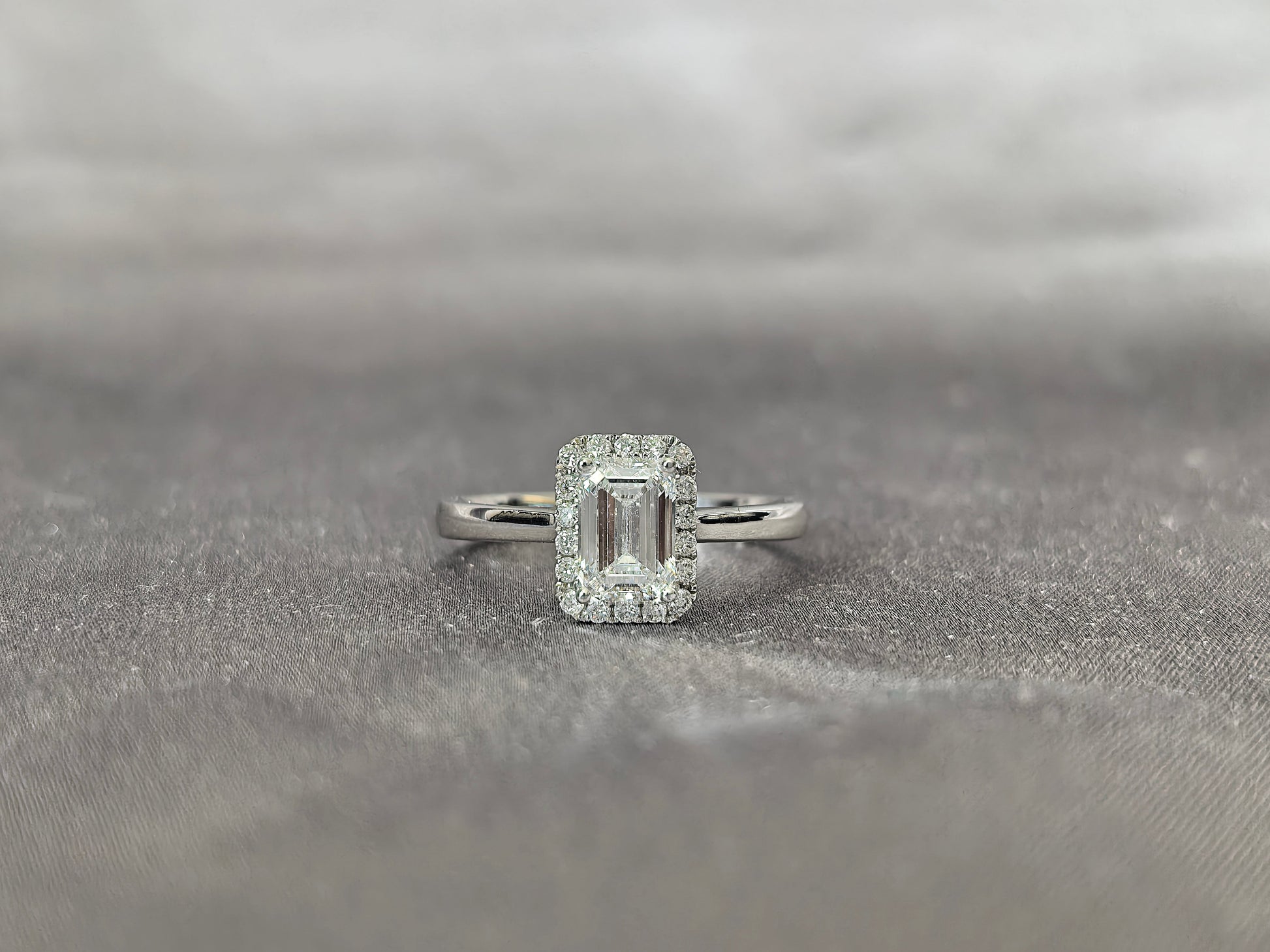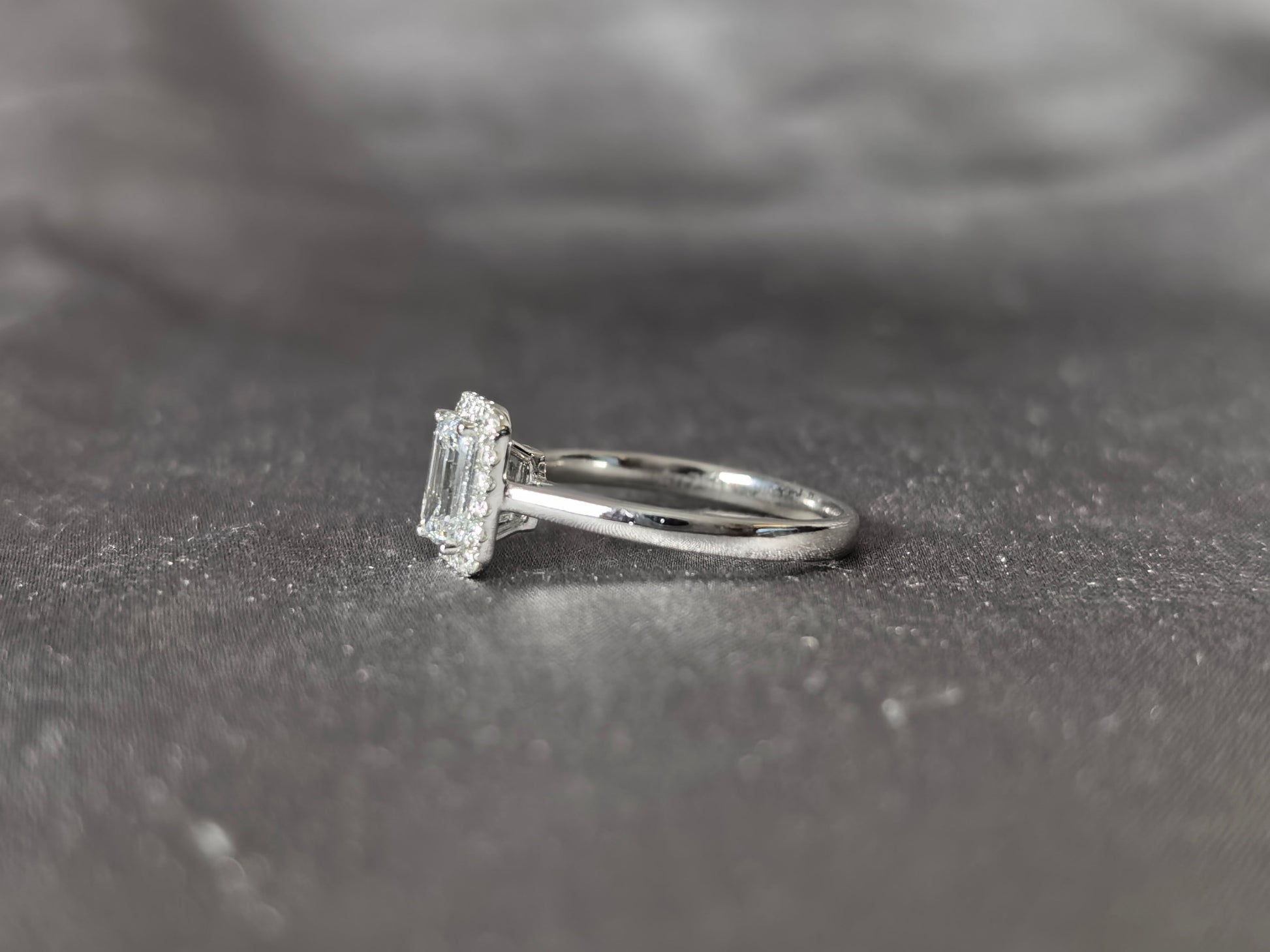 Emerald Cut Lab Grown Diamond Solitaire Ring with Halo| Simple Plain Band
