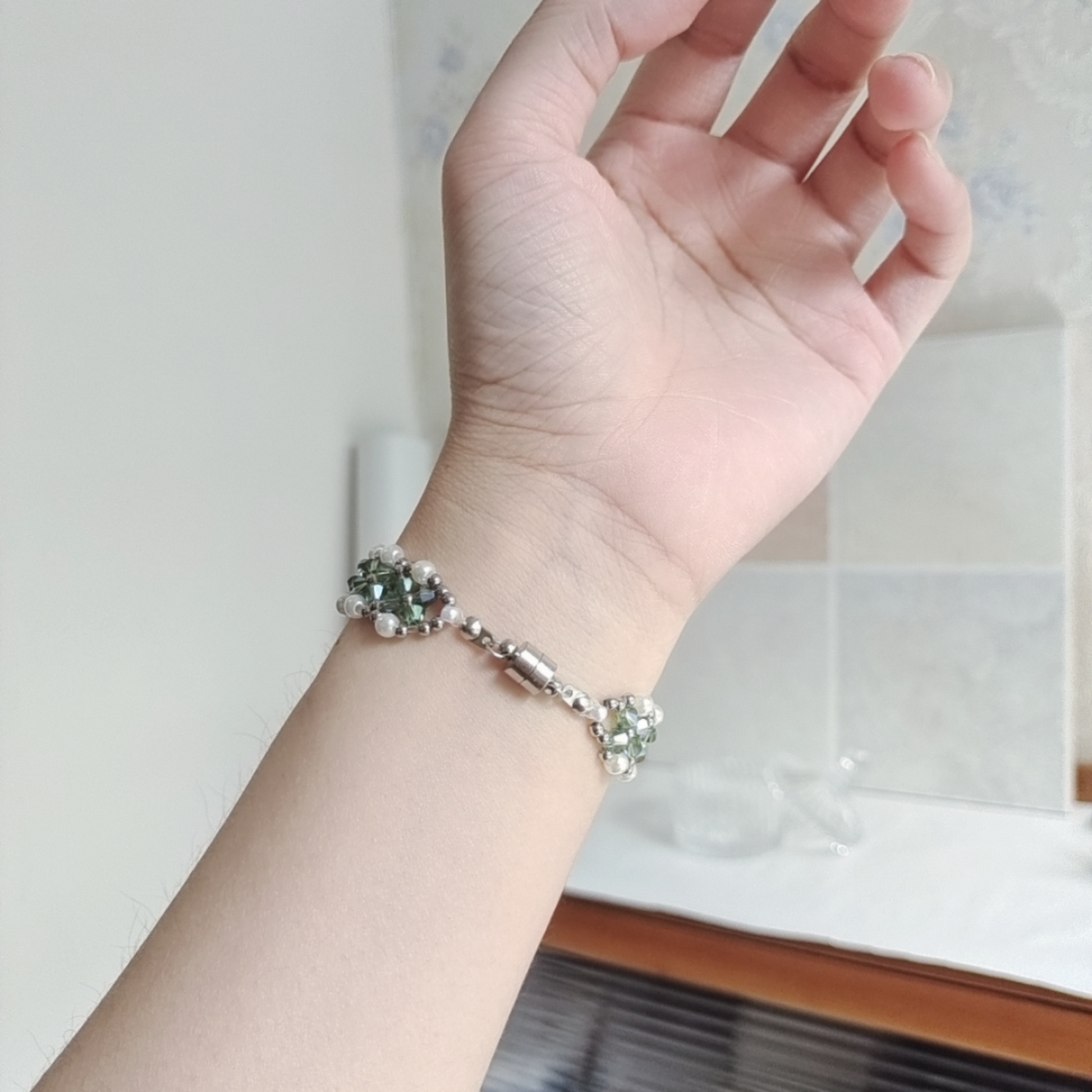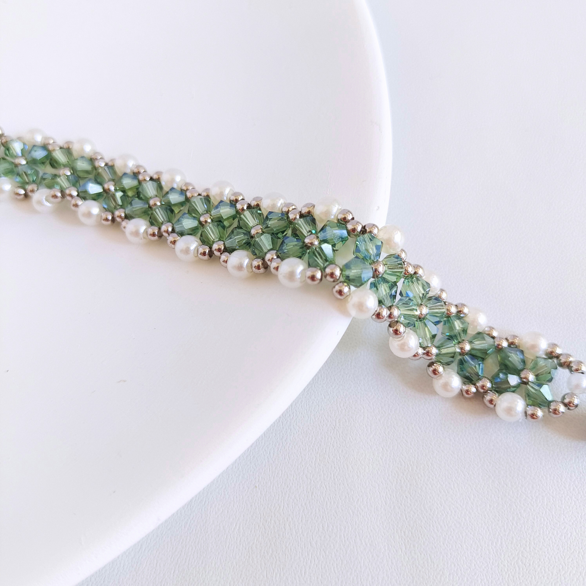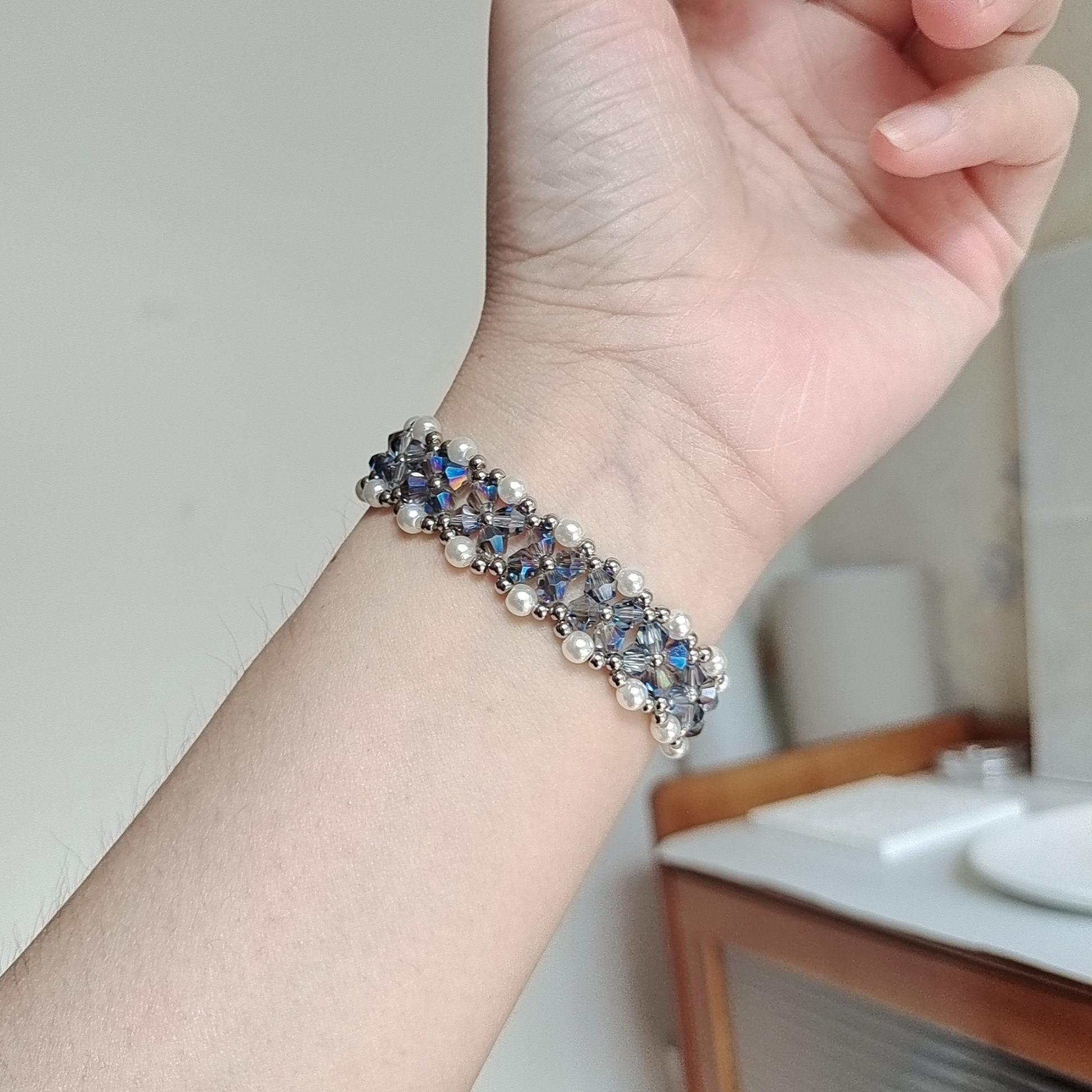 No.07 Handmade Beaded Bracelet Kit - 4mm Diamond Beads, 2.5mm Silver Seed Beads, 3mm & 4mm Pearls - DIY Craft Kit for Beginners