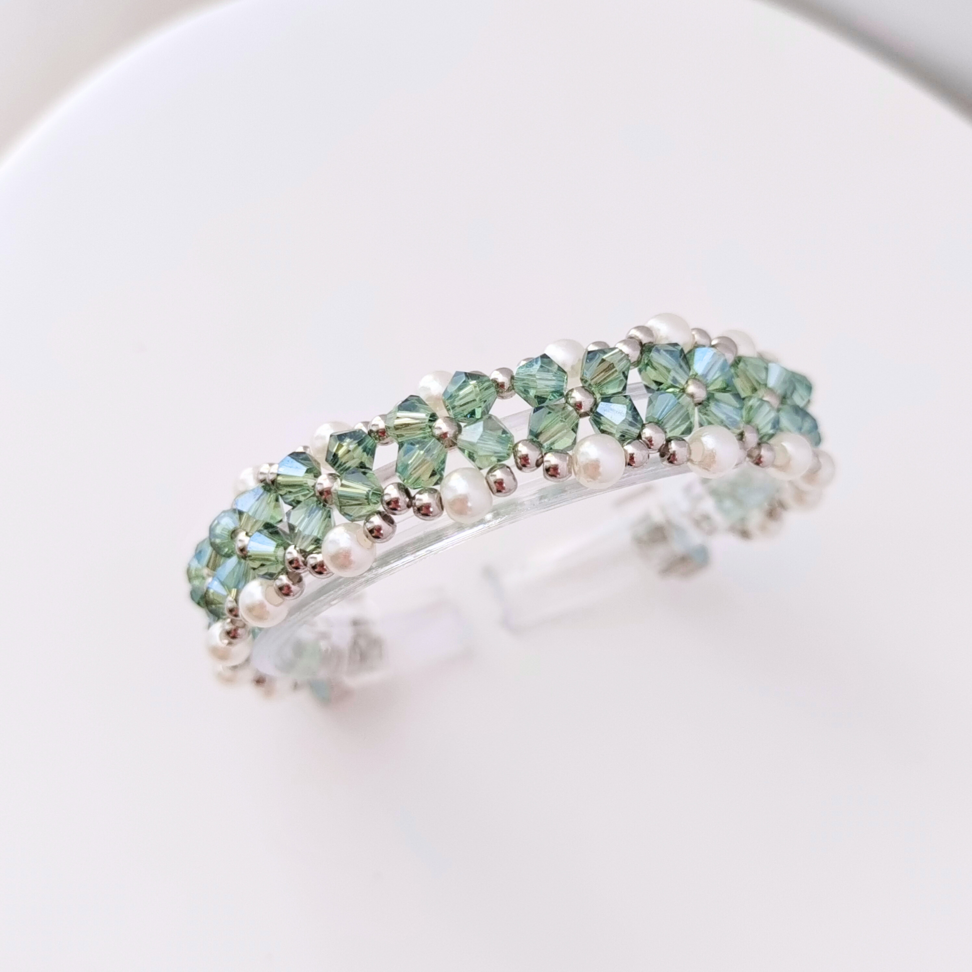 - Unique Design: The grey-green diamond beads and silver seed beads paired with classic pearls create a modern yet elegant jewelry accessory.
