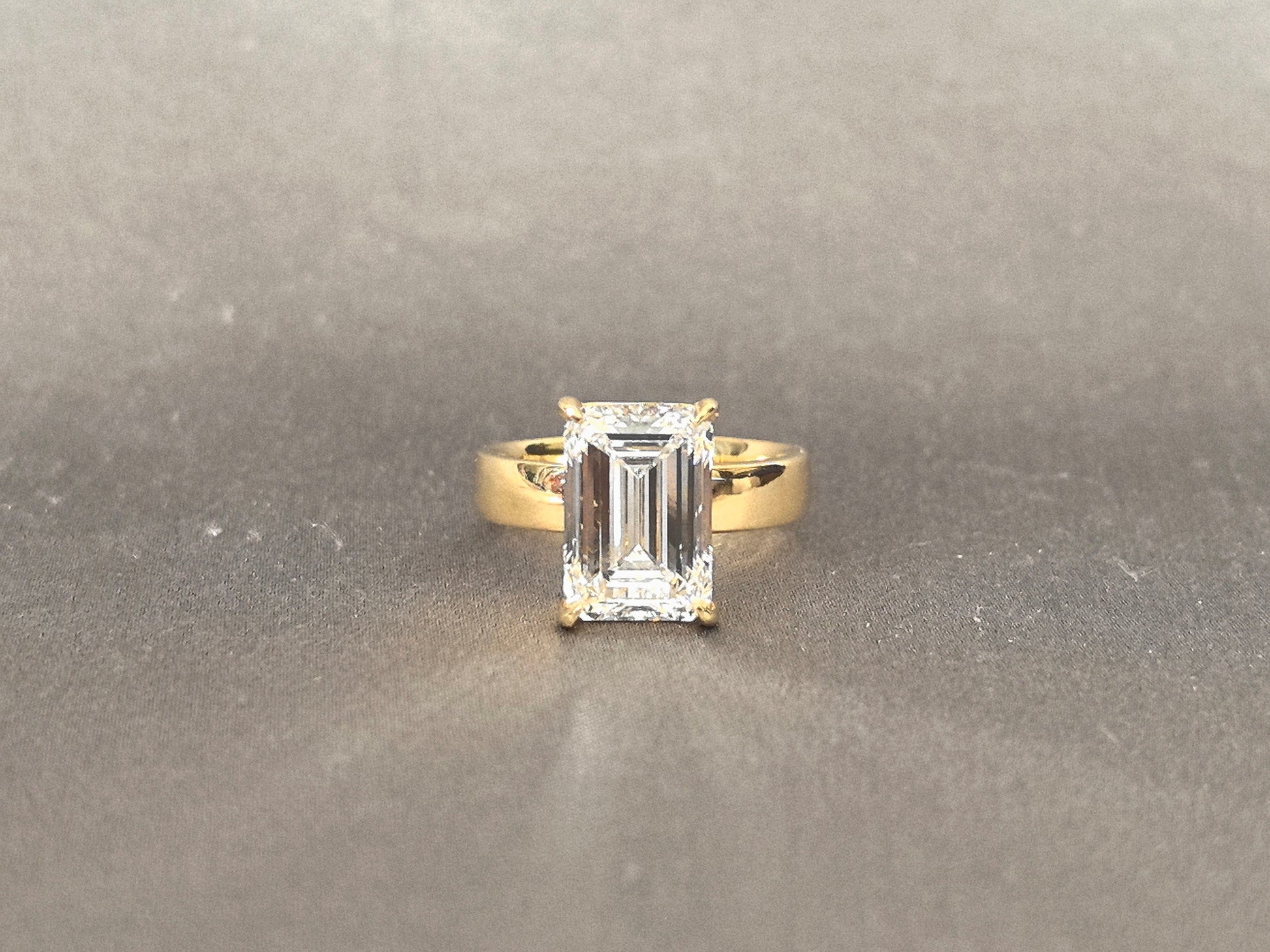 Emerald Cut Lab Grown Diamond Ring | Wide Flat Band Solitaire