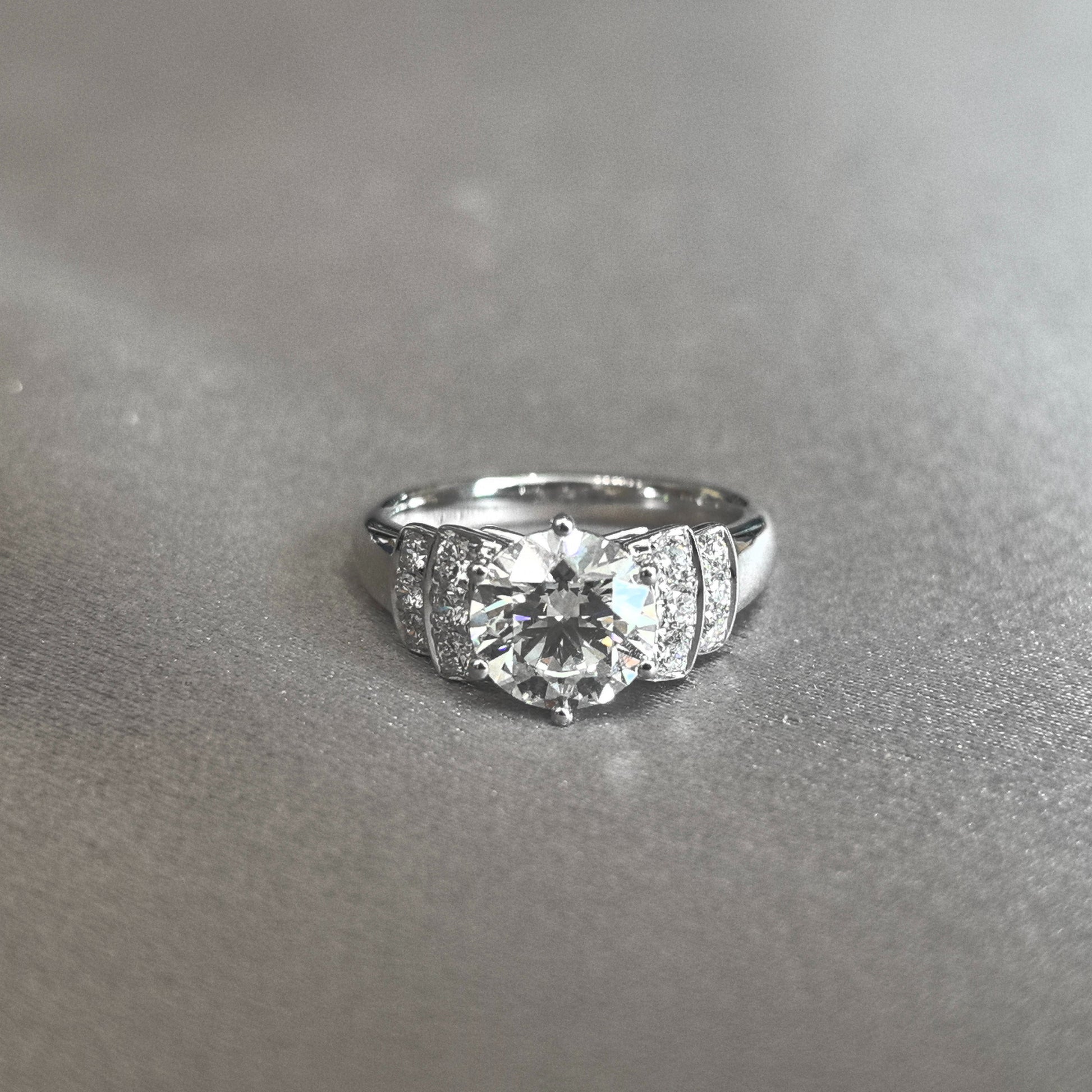 - Set in white gold, double Halo with Pavé Mini Side Stones