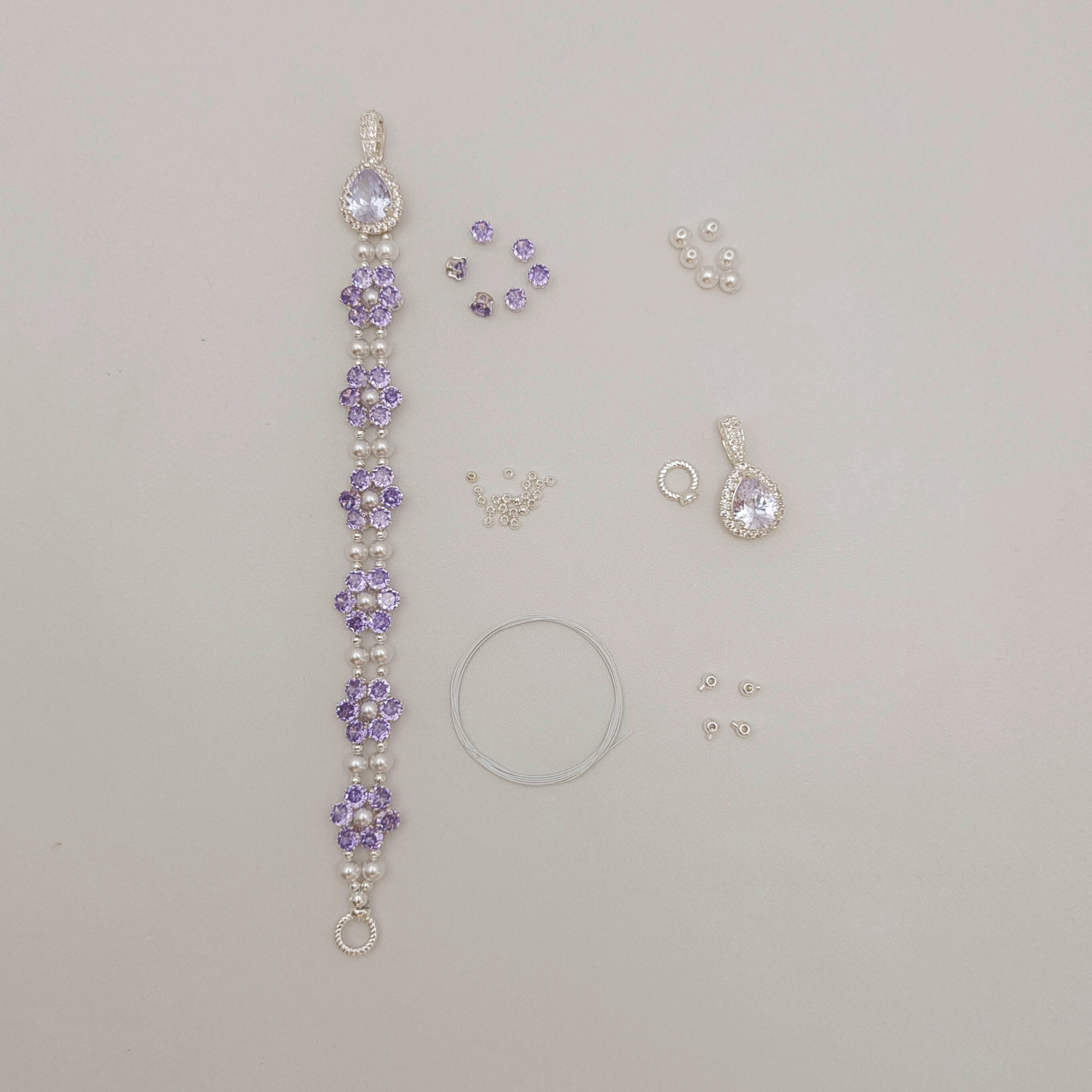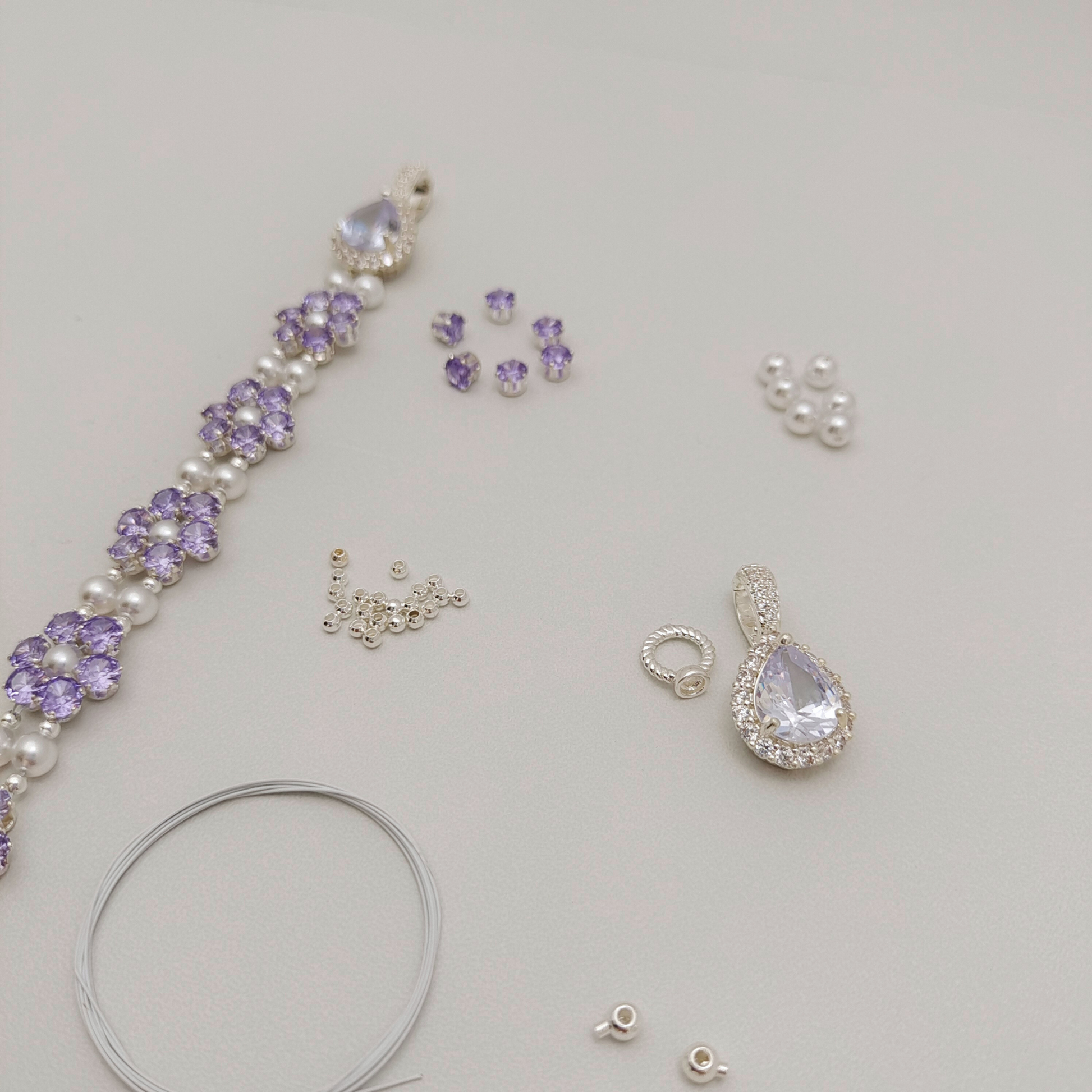 No.59 Purple Daisy DIY Bracelet Kit – Purple CZ, Pearls, Drop Clasp & Full Tutorial