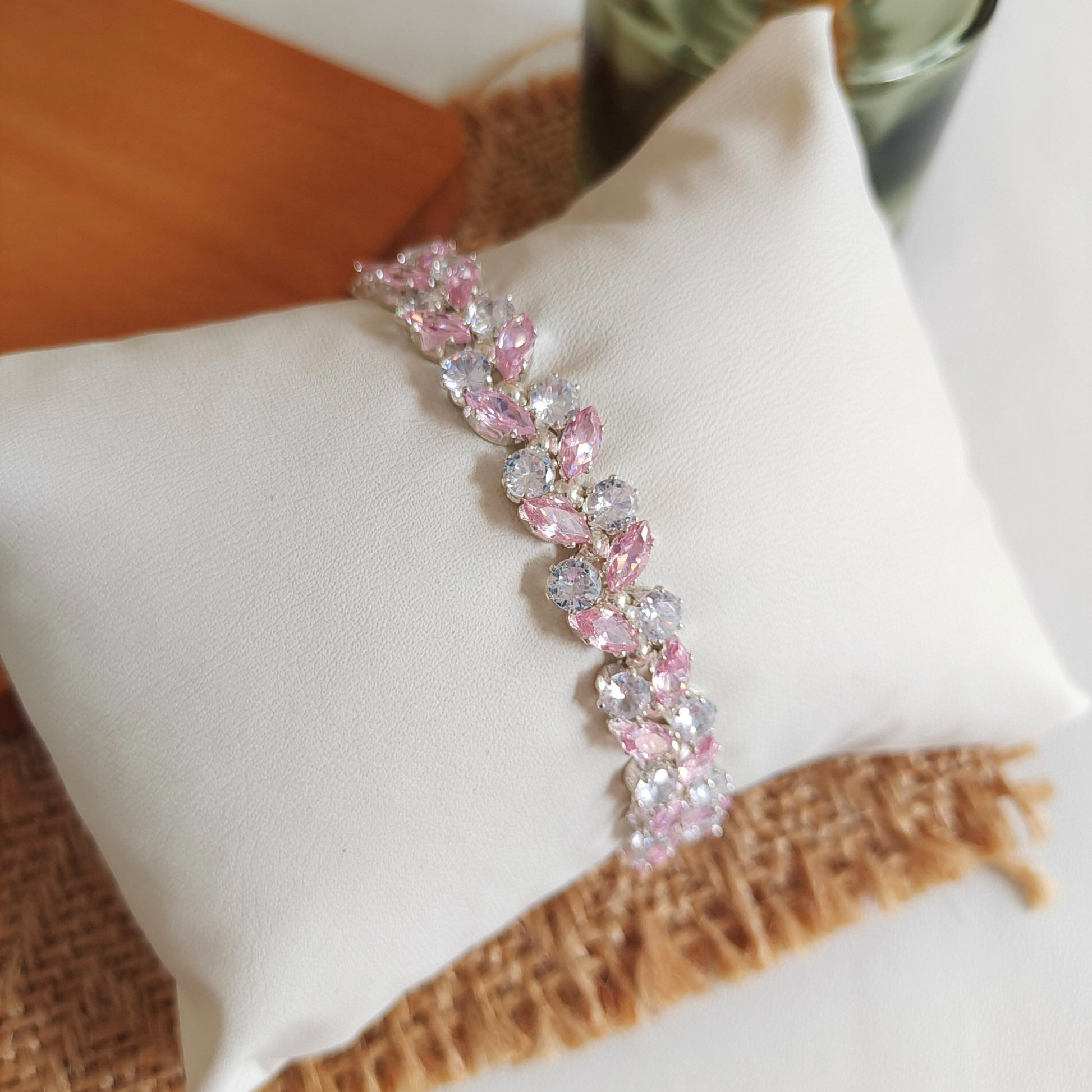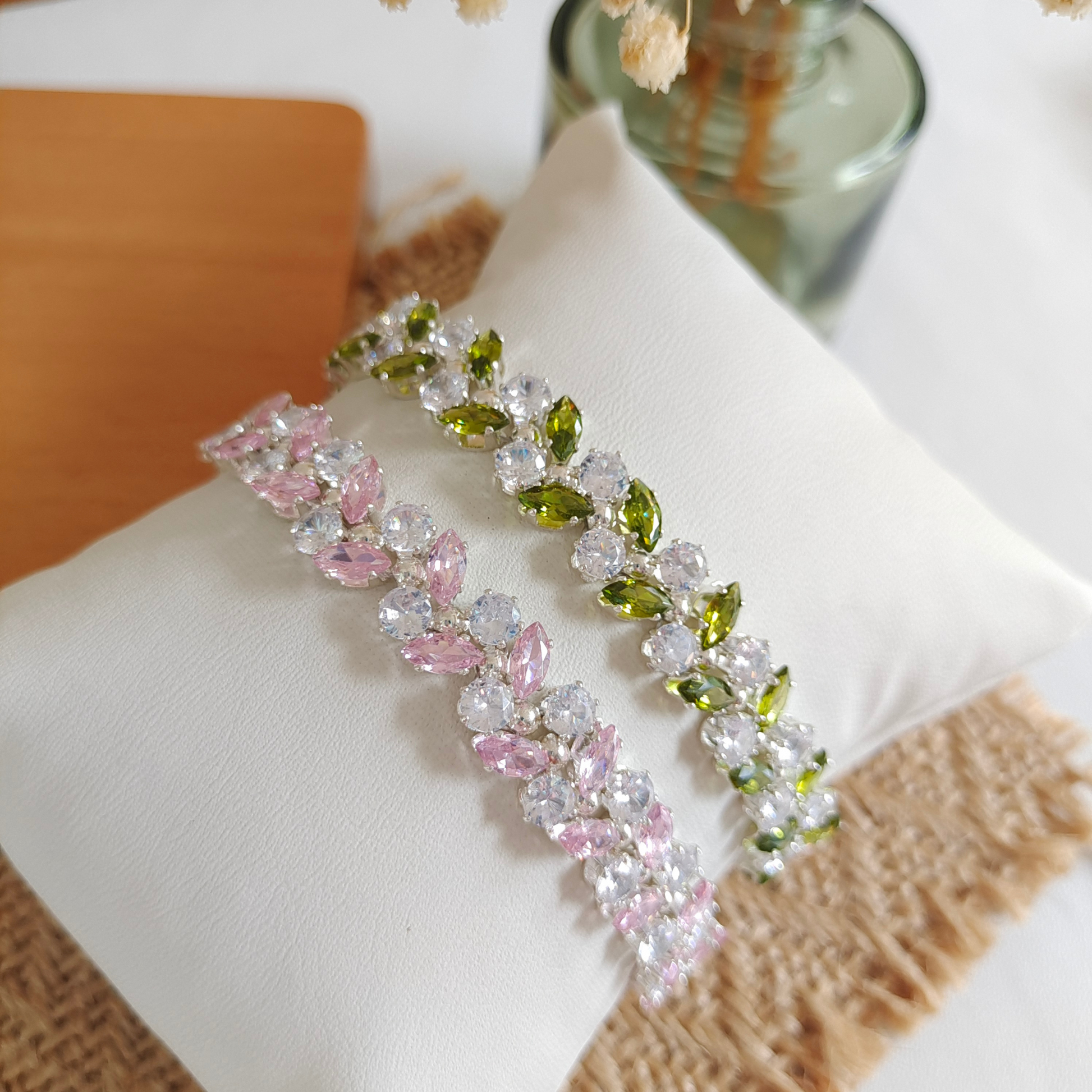 No.36 Olive Branch DIY Bracelet Kit β Silver Claw Pink & Green marquise zircon beads