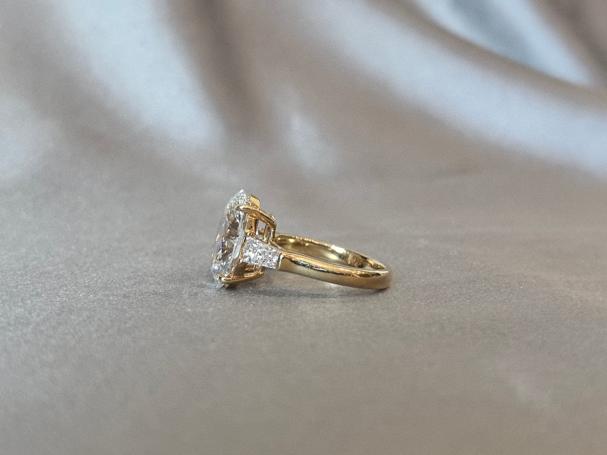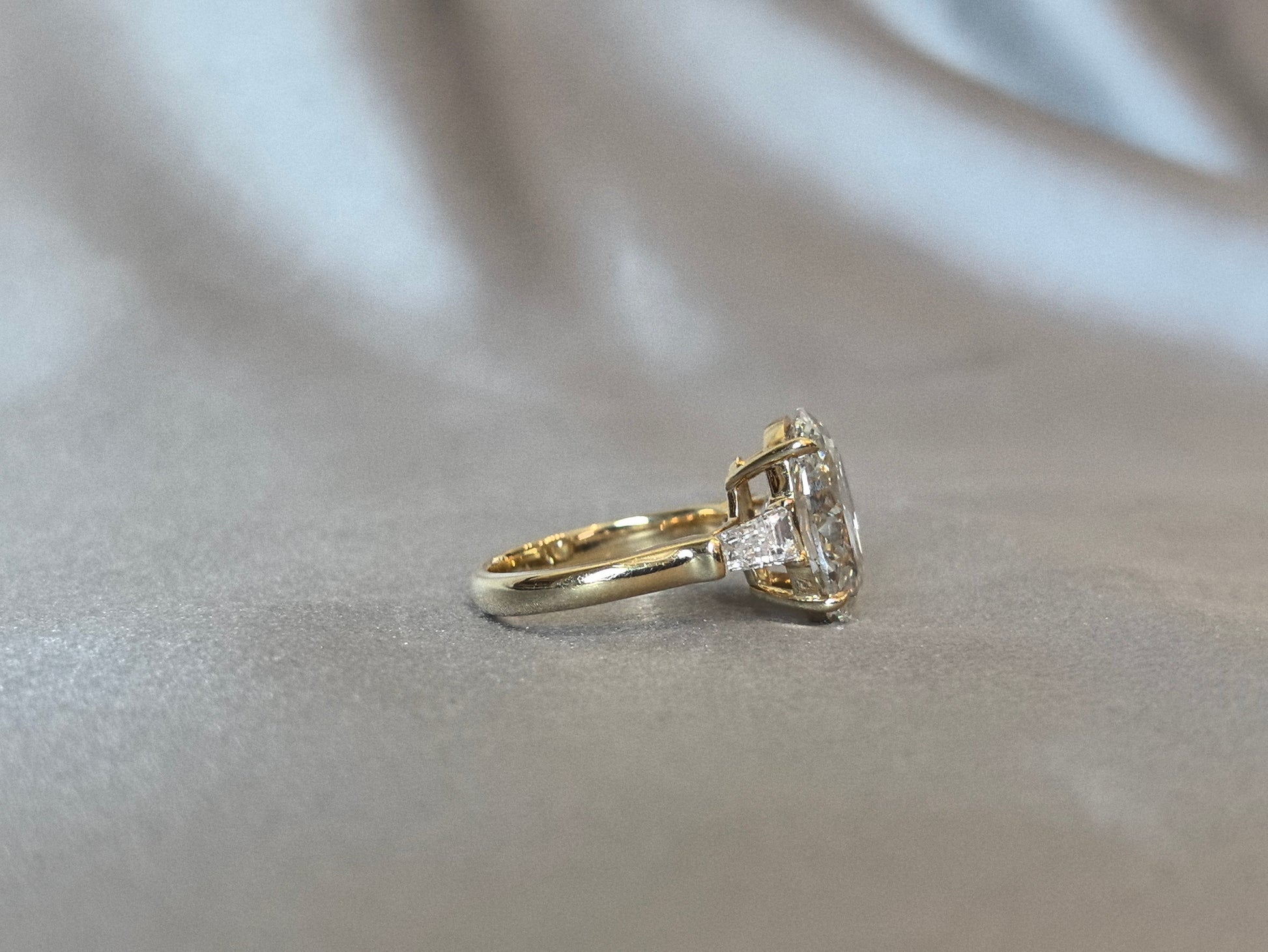 Oval Center Trilogy Ring | Baguette Sidestones | Architectural Elegance | Lab-Grown Diamonds