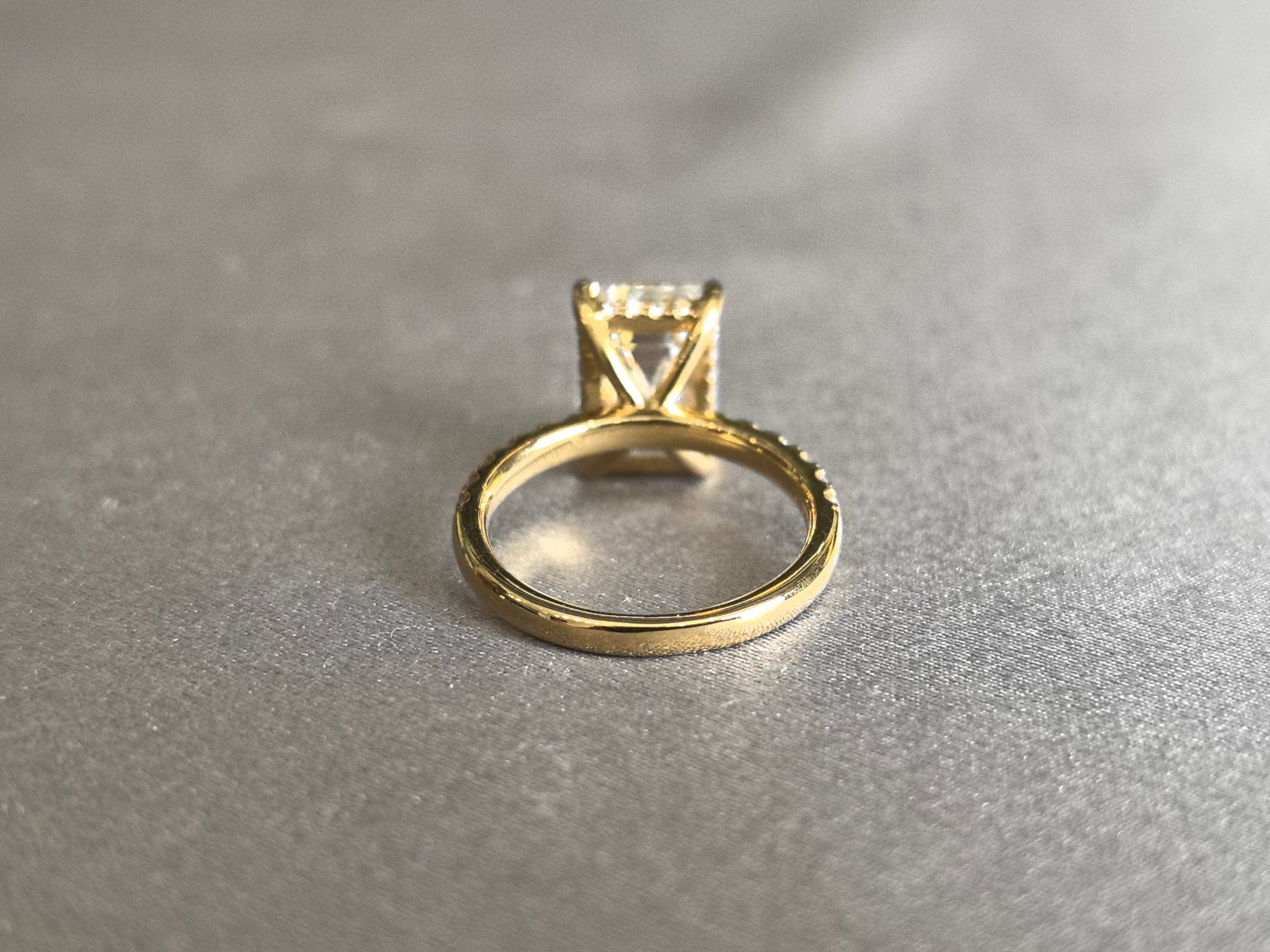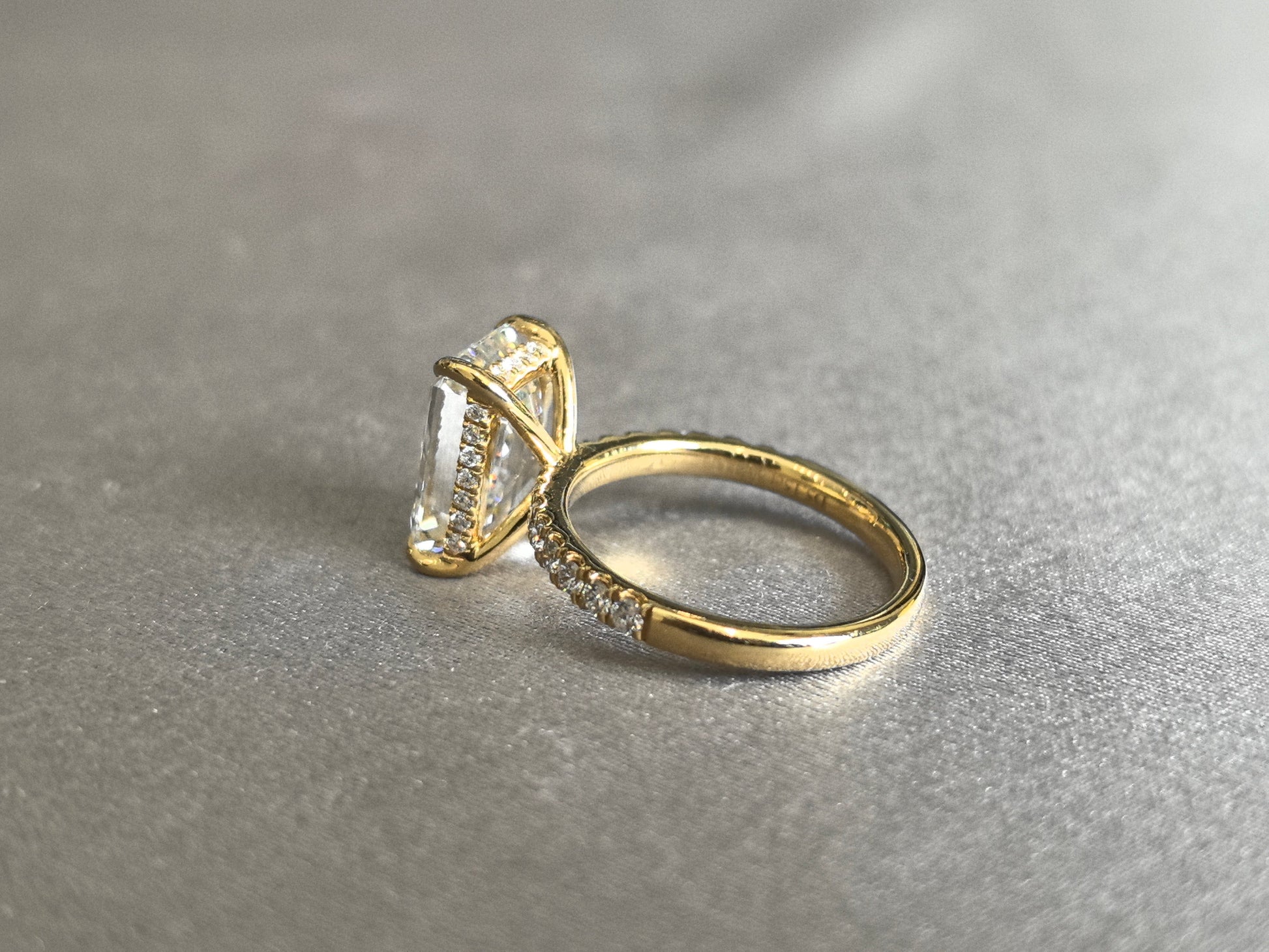Emerald Cut Lab Grown Diamond Ring | Half Eternity Band & Hidden Halo