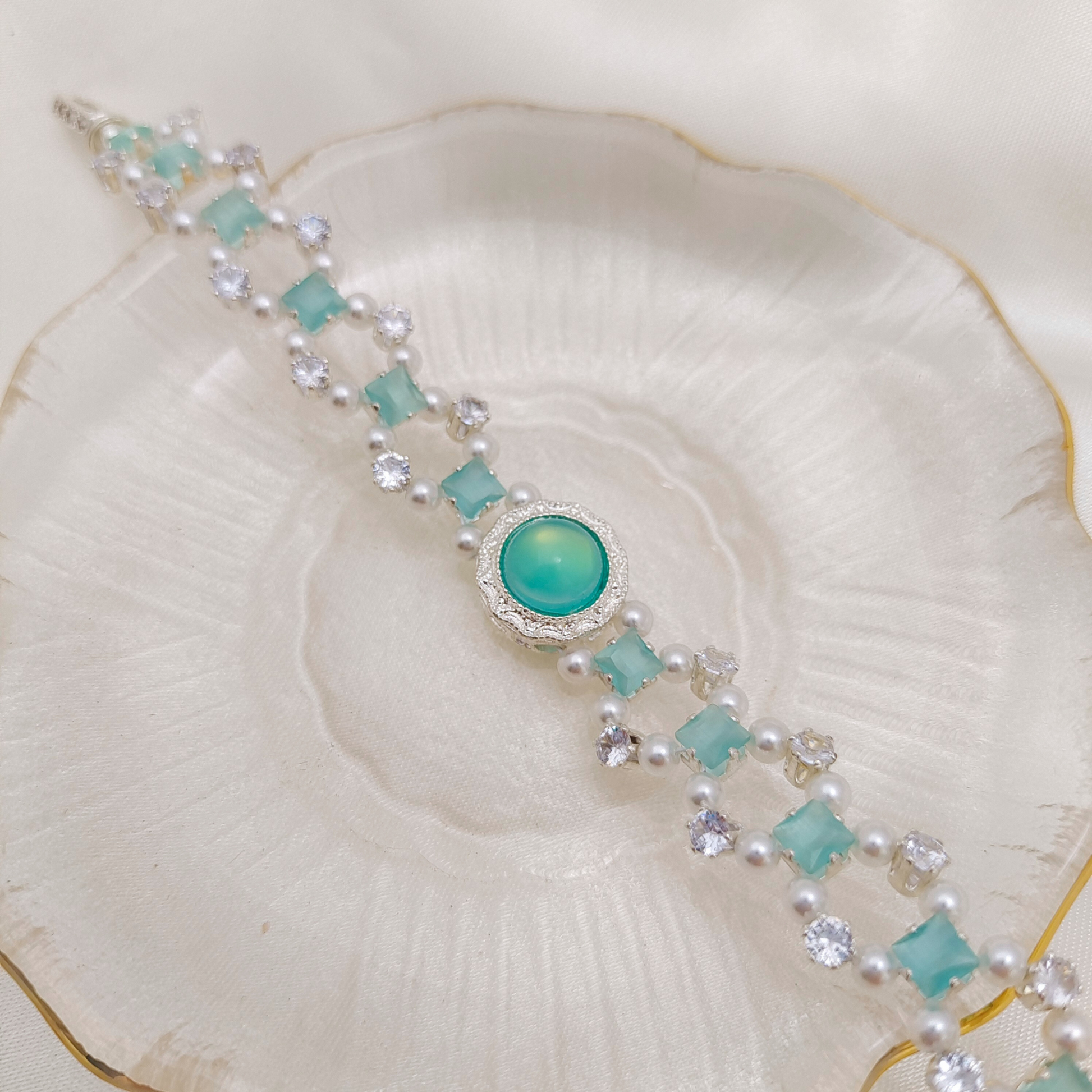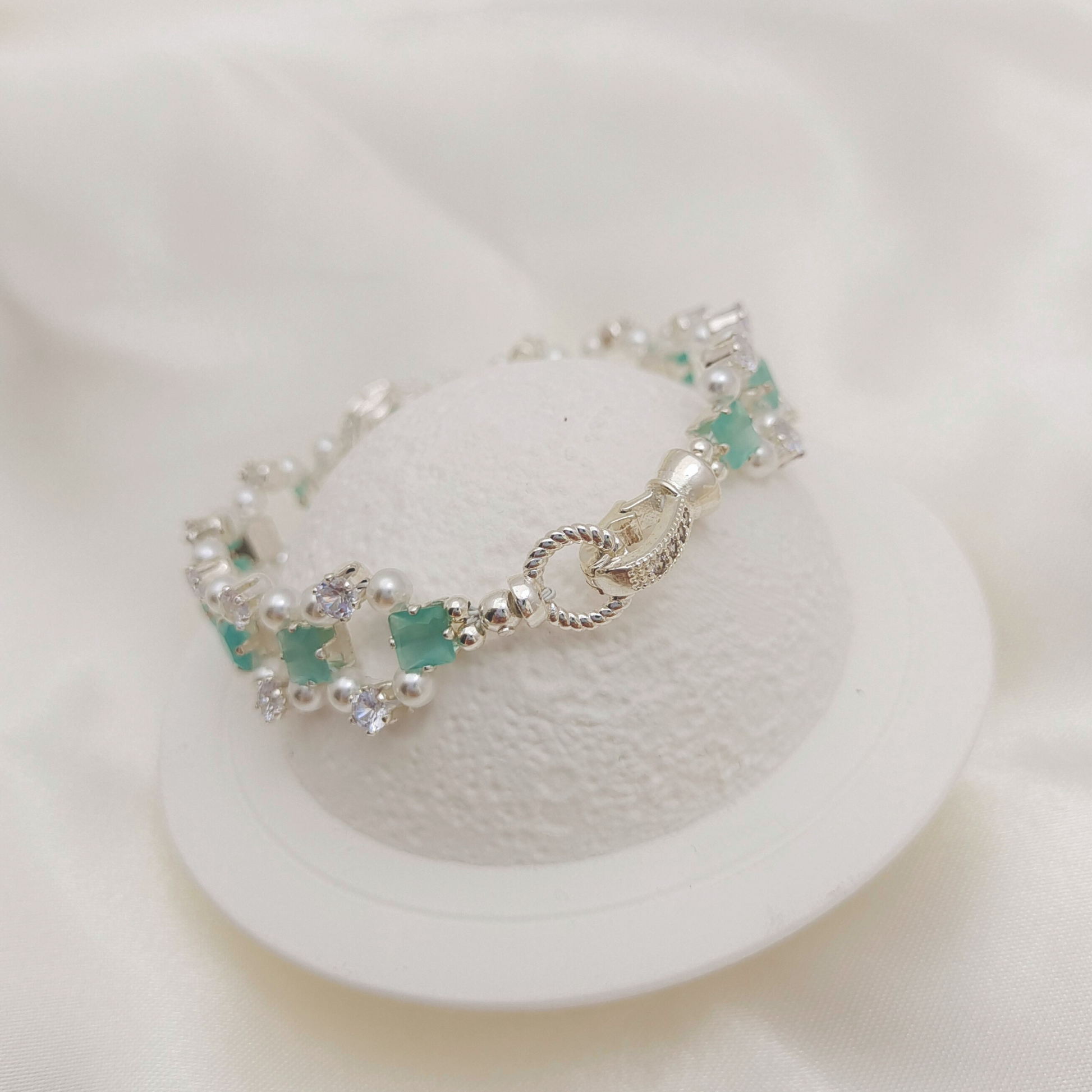 The Persian Cat handmade bracelet captures elegance and mystery in a unique monochrome palette. It features shimmering 4mm square cat’s eye zircon, delicate 3mm white round CZ, 3mm pearls, and a subtle touch of 2mm seed beads, all arranged in a soft, balanced rhythm.