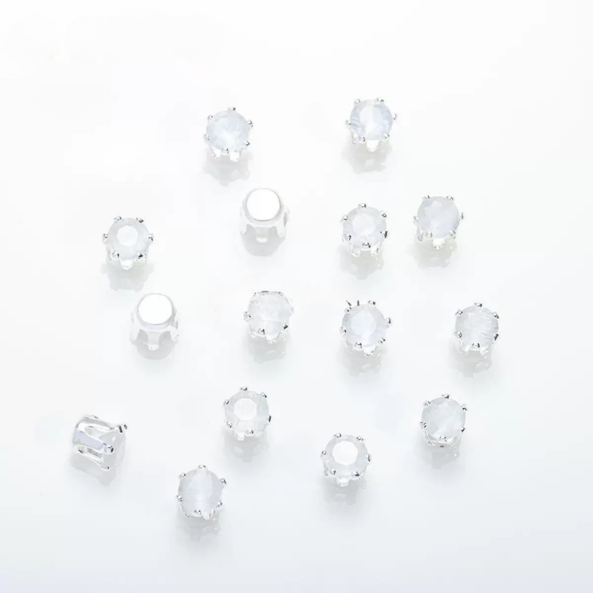 【C01】50pcs 4mm Round Cat’s Eye CZ Beads – Silver-Plated Prong-Set, DIY Jewelry Spacer Charms