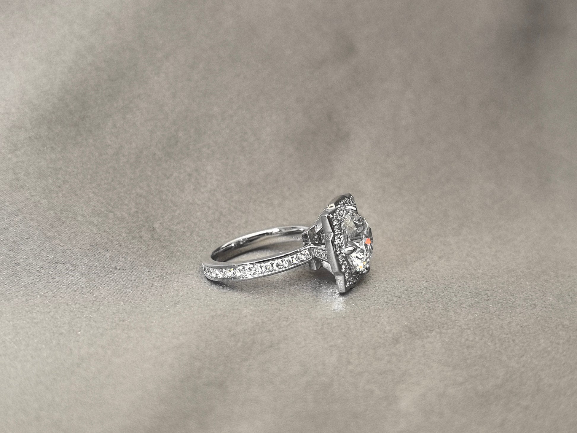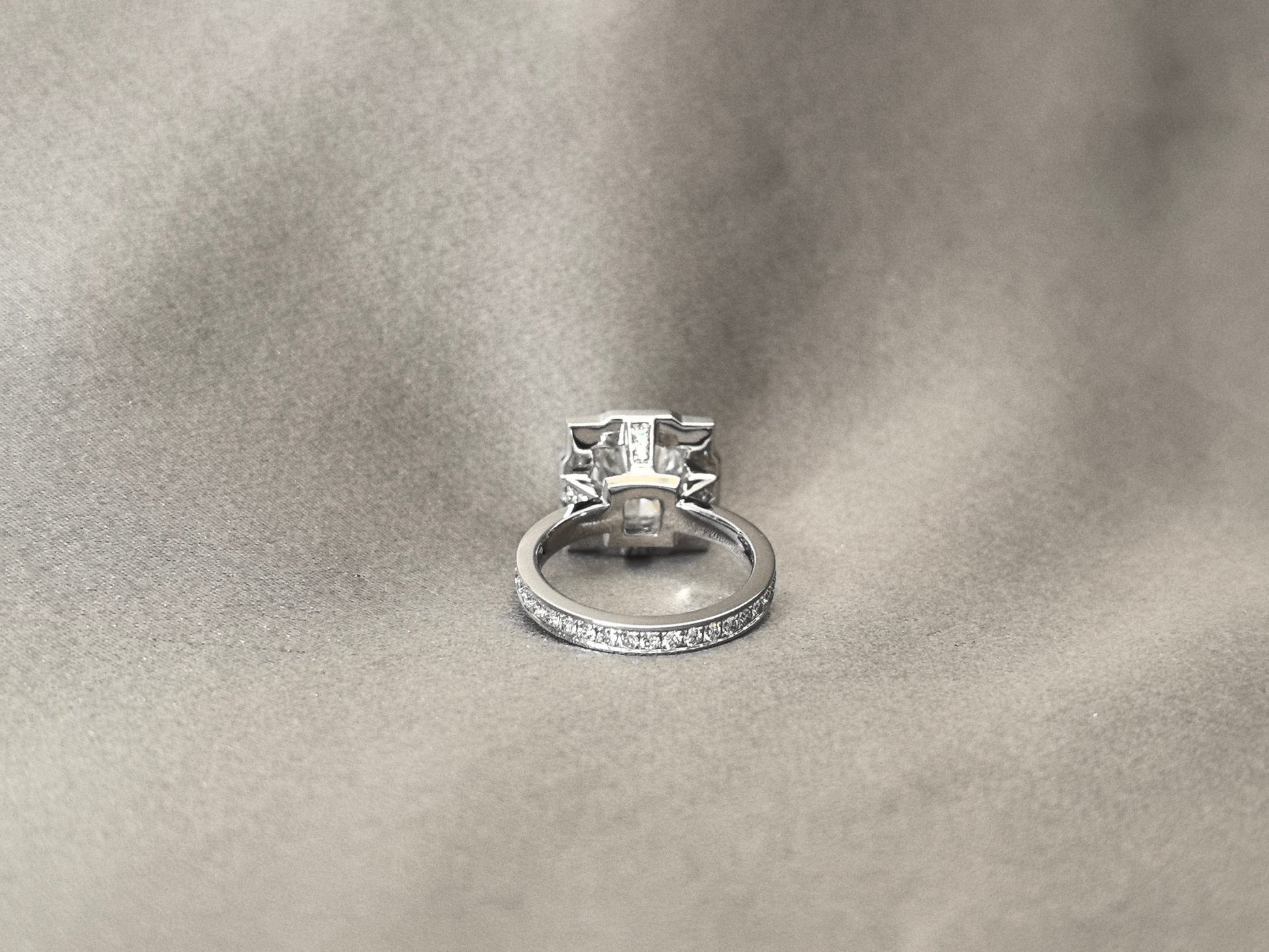 Available in carat weights from 1 to 20 (with the half-eternity diamonds complementing the main stone’s size), US ring sizes 3 to 12, and with metal options of 14K/18K yellow gold, rose gold, white gold, or platinum, it offers endless possibilities for personalization.