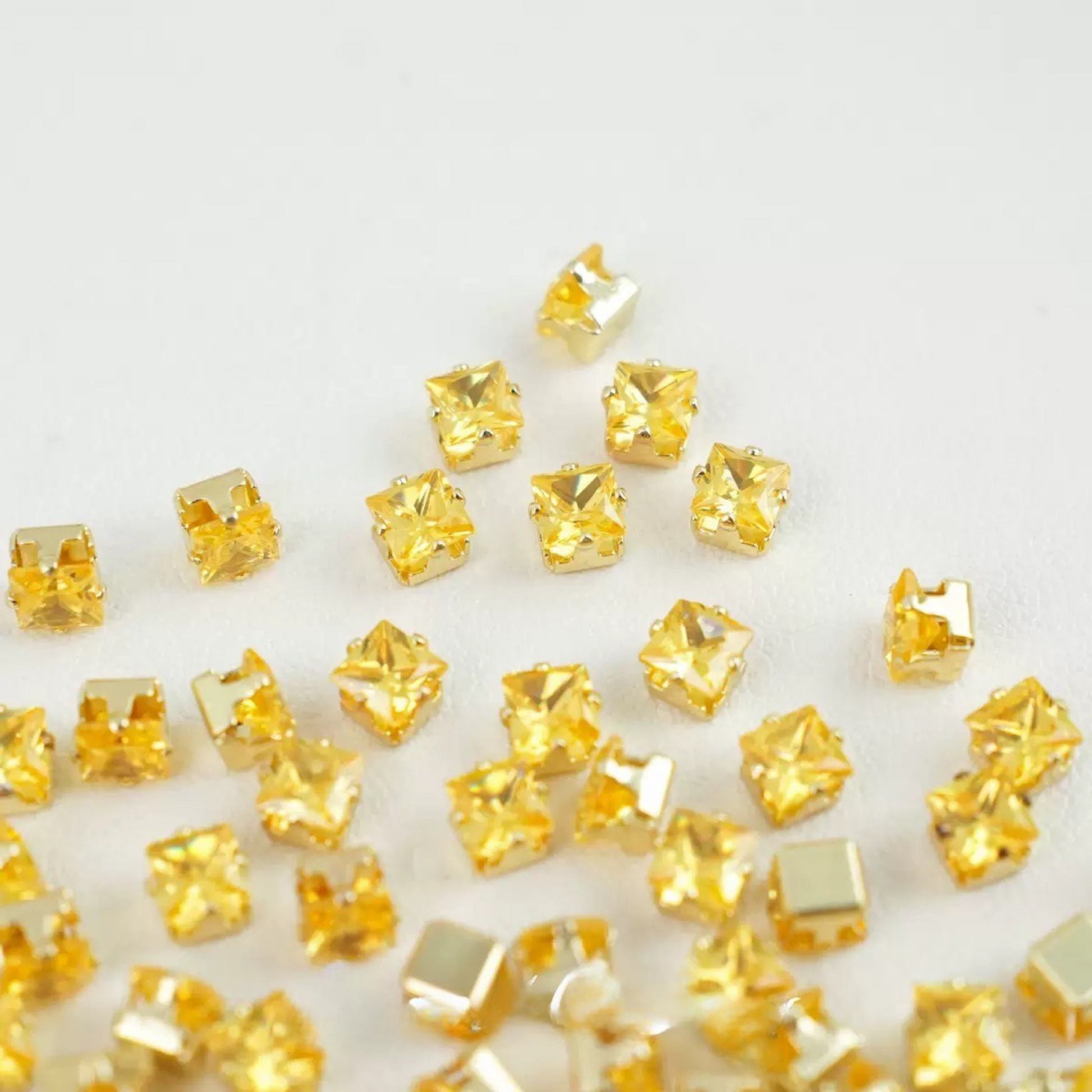 Add structure and sparkle to your next DIY project with these 50pcs 4x4mm square zircon spacer beads. Featuring a gold-tone 4-prong setting, each bead is crafted to reflect brilliant light while providing stability to your handmade creations.