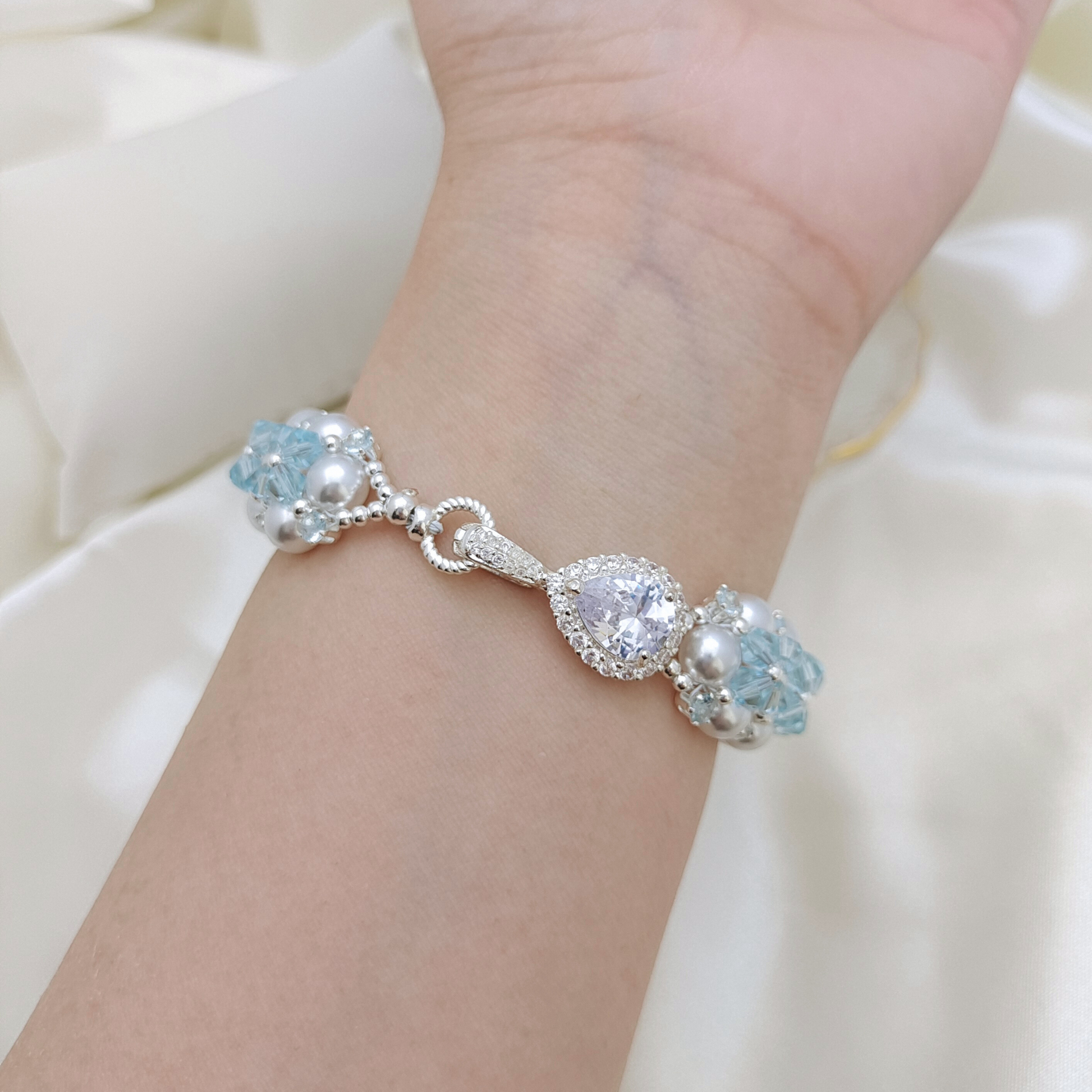 No.79 Tear of Mermaid Handmade Bracelet – 6mm Pearls, Crystals, CZ, with Teardrop Clasp