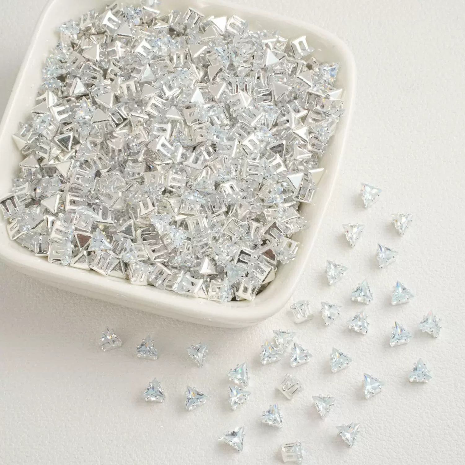 γA17γ50pcs Triangle Zircon Beads β 4mm Silver-Claw DIY Spacer for Handmade Jewelry